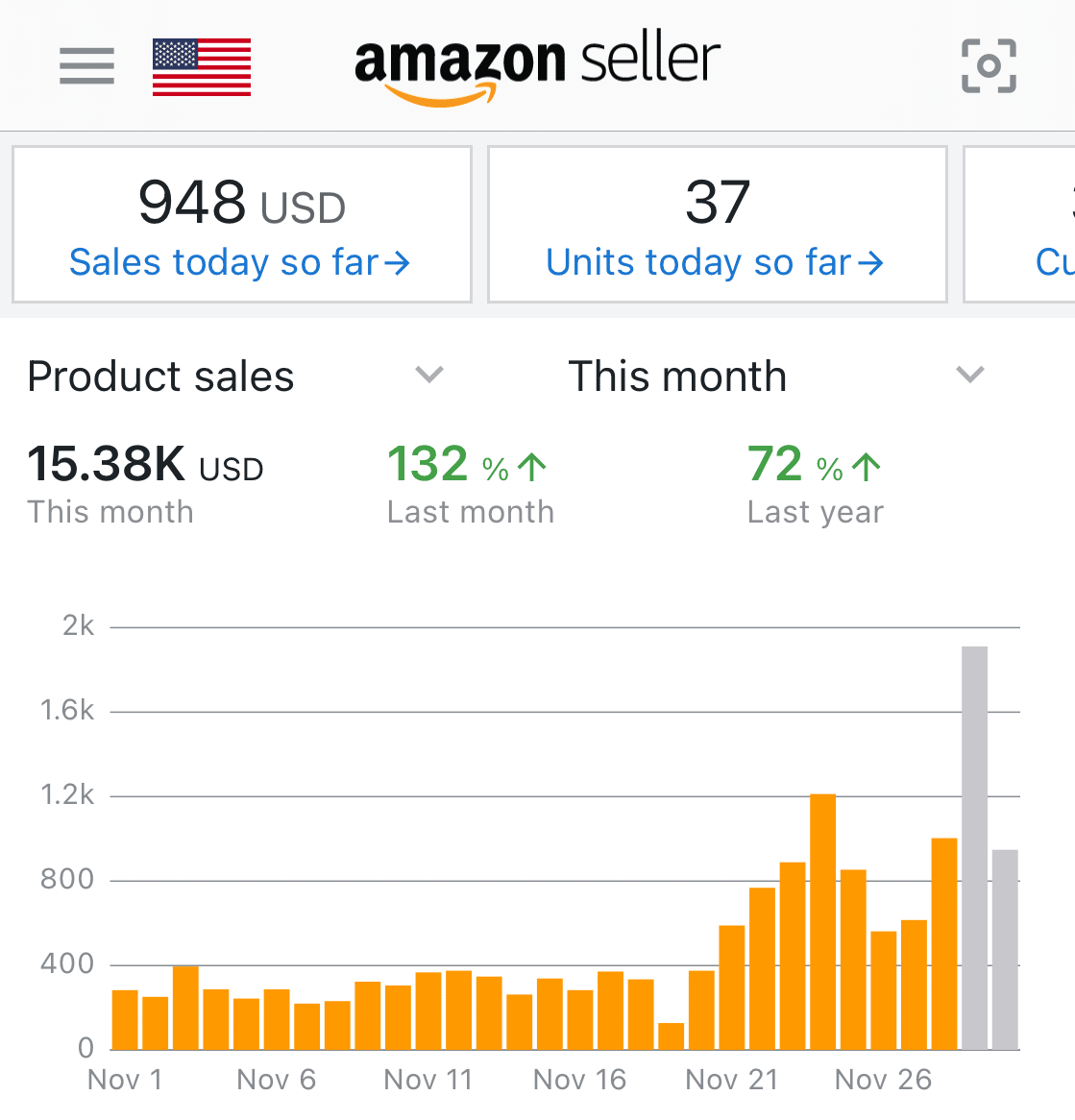 “The sales keep getting better and better as the week goes. My brand new product is now my top seller as well! Unfortunately, I don’t think I’ll be able to slow it down enough before I’m able to get new inventory in there. But I suppose that’s a great problem to have.
